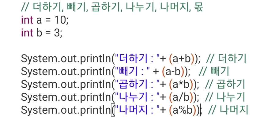 1) 산술연산자 : 사칙연산을 하기위해 사용되는 연산자